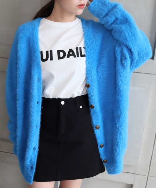 毛足が長くふんわりとした表面感が、女性らしくやさしい雰囲気を演出するシャギーニットカーデ。ルーズシルエットに鮮やかなカラーとシンプルなVネックで、デイリーにも着こなしやすいよう、甘さを抑えたデザインに仕立てました。ふわふわシャギーニットが、着るだけでシーズンムードを高めてくれるアイテムです♪